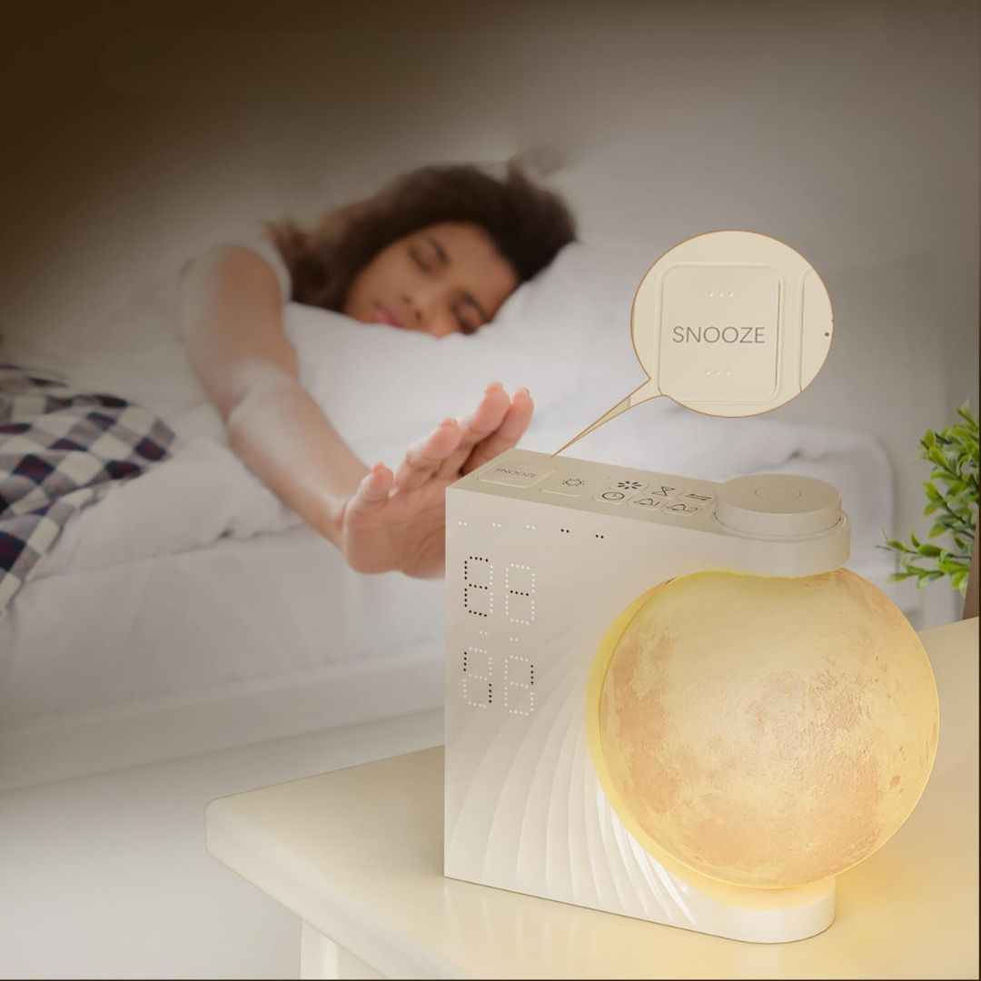 LunaRise™ includes 10 soothing options like ocean waves, birdsong, rain, white noise, and more.
