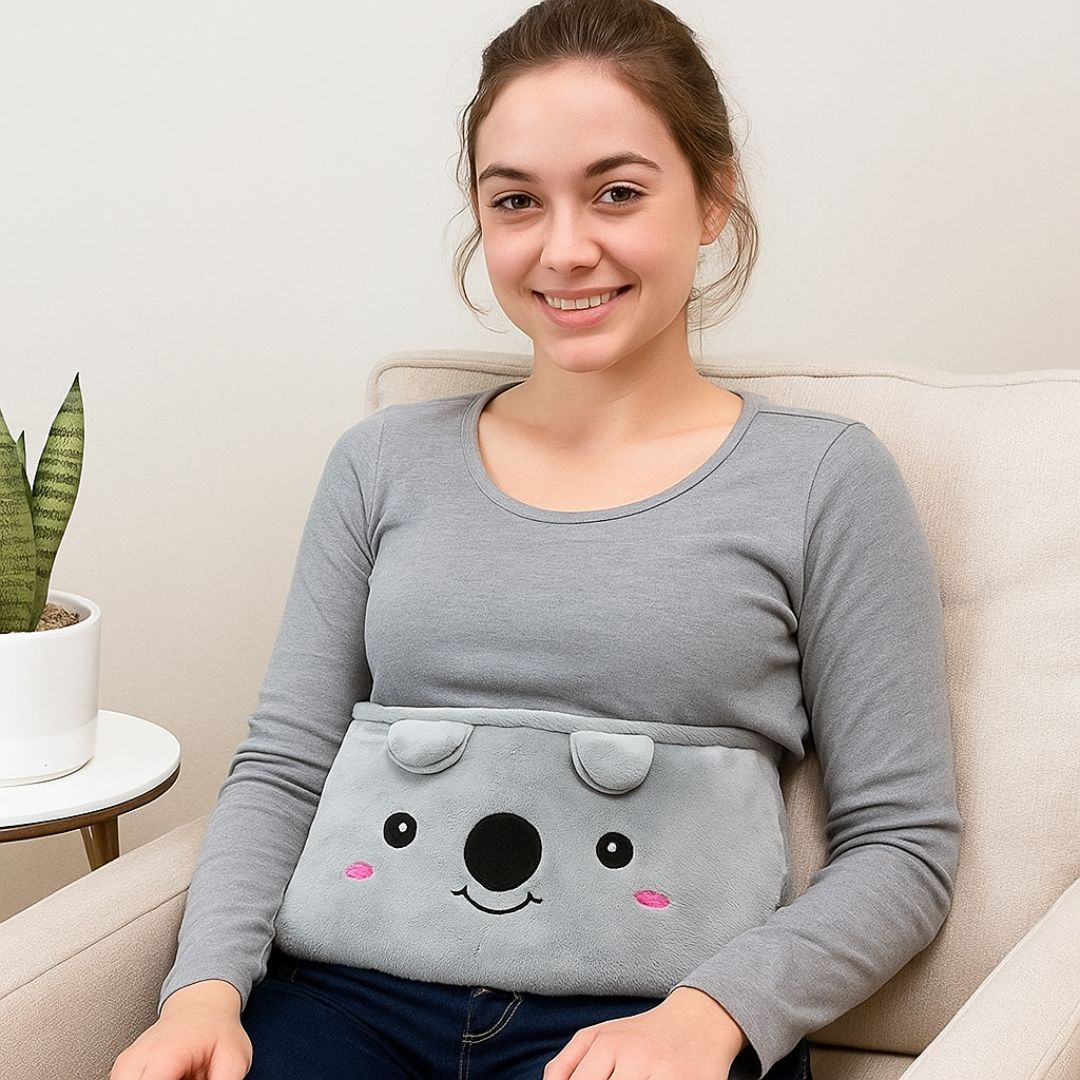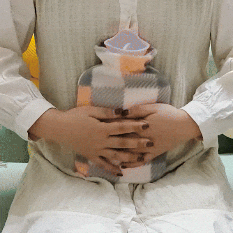 Simply fill the hot water bottle with warm water, slip it into the plush cover, and wrap it snugly around your waist.